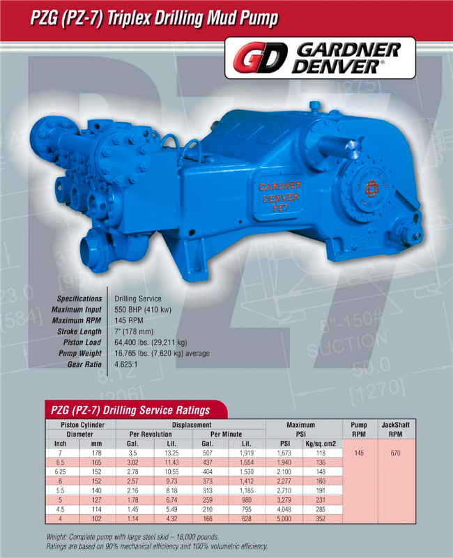 • Gardner Denver PZ-7 (PZG) Triplex Drilling Mud Pump.